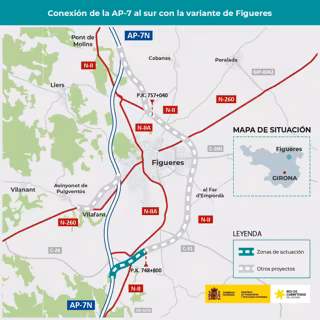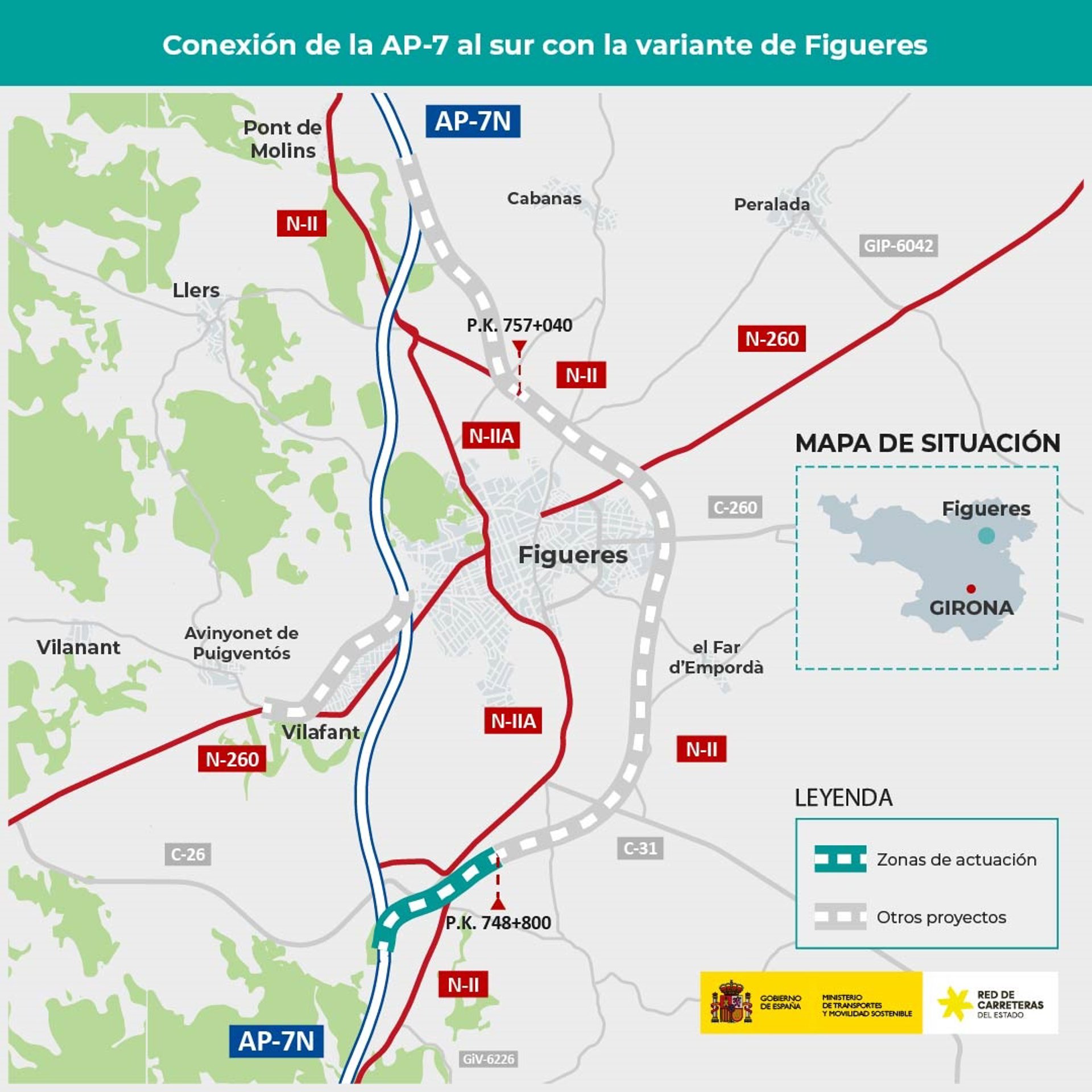 El objetivo es resolver la confluencia entre la carretera N-2 (que será transformada en vía multicarril en su variante de Figueres) y la autopista AP-7 en el entorno sur de dicha localidad, así como optimizar la conectividad entre ambas infraestructuras mediante un nuevo diseño que mejore los flujos de tráfico y elimine las deficiencias del trazado actual.