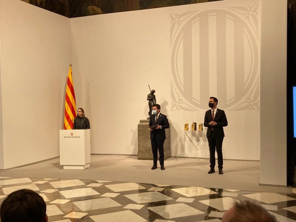 El presidente, que ha sido el encargado de las entregas junto al conseller de Empresa y Trabajo, Roger Torrent, ha otorgado también un reconocimiento colectivo al sector del comercio por "el esfuerzo realizado durante el confinamiento para abastecer a la población".