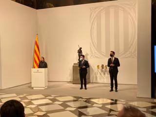El presidente de la Generalitat, Pere Aragons, y el conseller de Empresa y Trabajo, Roger Torrent, en los Premios Nacionales de Comercio de la Generalitat - GENERALITAT