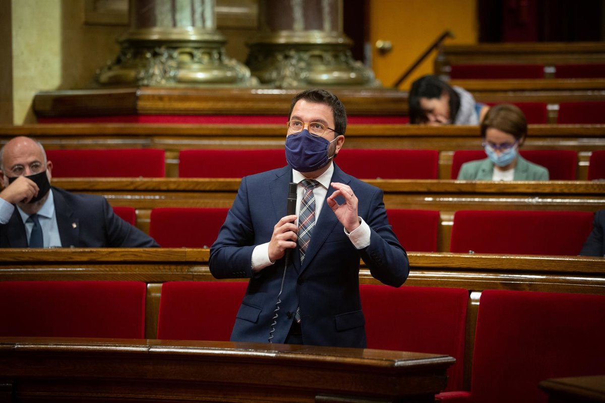 El vicepresidente en funciones de presidente, Pere Aragons, en el pleno del Parlament - EUROPA PRESS/D.ZORRAKINO