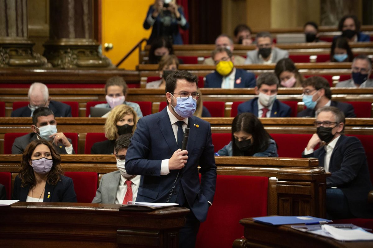El presidente de la Generalitat, Pere Aragons, en el pleno del Parlament en la sesión del 20 de octubre. - DAVID ZORRAKINO - EUROPA PRESS