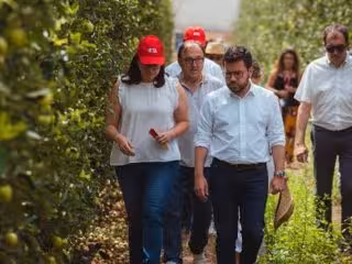 En una visita a la finca del Institut de Recerca i Tecnologia Agroalimentries (Irta) de Mollerussa (Lleida), ha señalado que en cambio la Generalitat "ha acompañado desde el primer momento al sector, los agricultores y los ganaderos del país para hacer frente al impacto de la sequía".