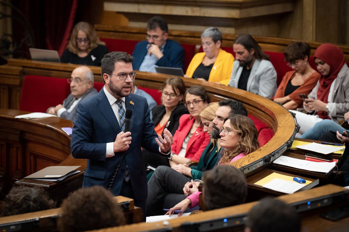 El presidente de la Generalitat, Pere Aragons, en el pleno del Parlament. - DAVID ZORRAKINO - EUROPA PRESS