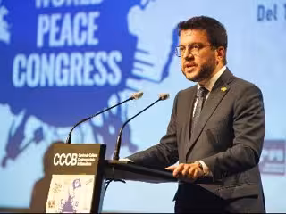 El presidente de la Generalitat, Pere Aragons, ha reivindicado que Catalunya está "promoviendo un diálogo y una resolución democrática a conflictos políticos" durante la sesión inaugural del segundo Congreso Mundial por la Paz que se ha celebrado este viernes en Barcelona.