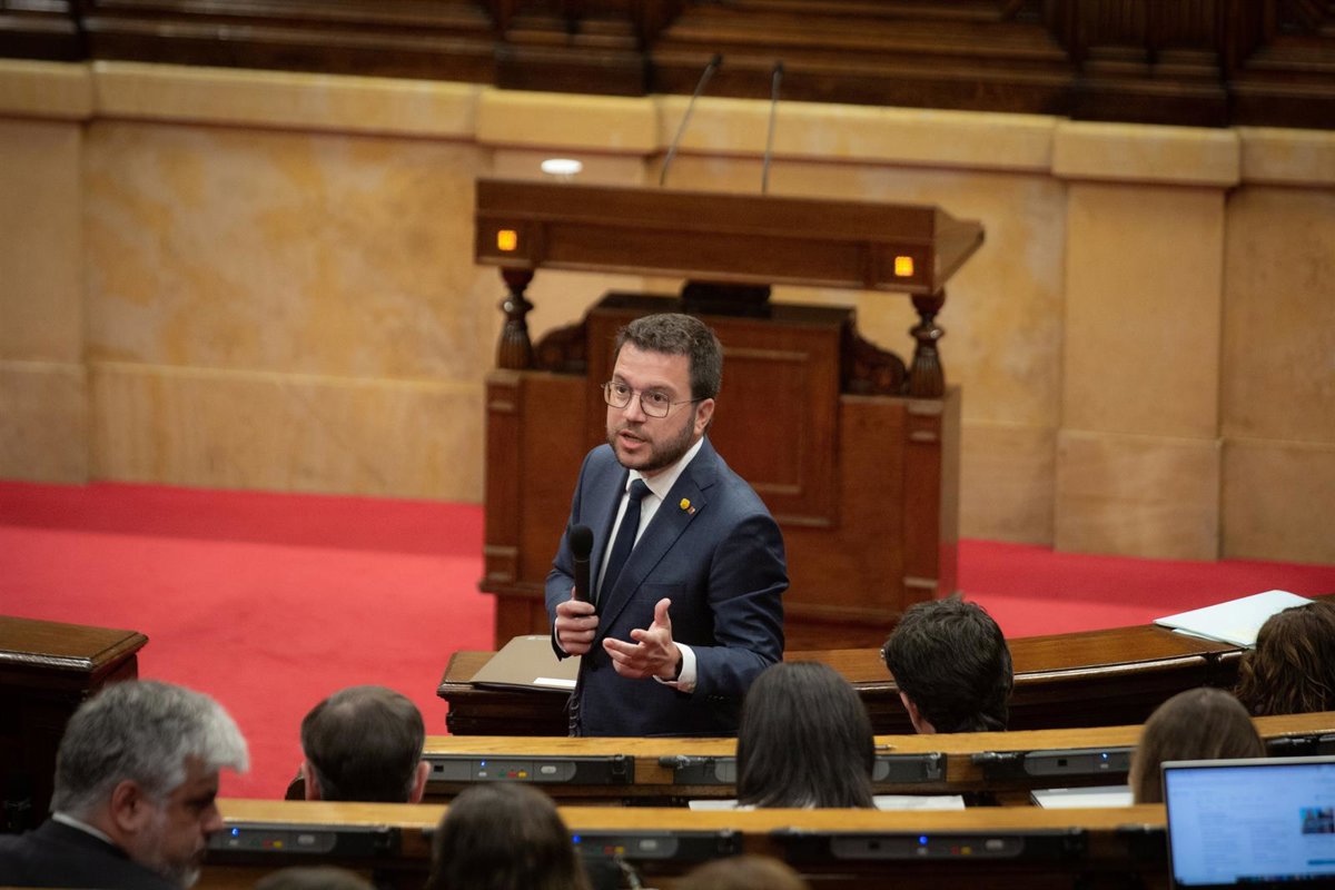 El presidente de la Generalitat, Pere Aragons, en el pleno del Parlament el 8 de junio. - DAVID ZORRAKINO - EUROPA PRESS