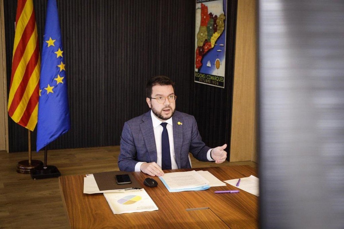 El vicepresidente de la Generalitat, Pere Aragons, durante la Conferencia de Presidentes autonómicos, que se ha celebrado de manera telemática con la participación de la presidenta de la Comisión Europea, Ursula von der Leyen. - GENERALITAT