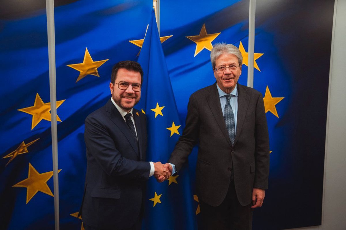 El presidente de la Generalitat, Pere Aragonès, se reúne con el comisario europeo de Economía, Paolo Gentilioni, en la sede de la Comisión Europea, en Bruselas. - GOVERN-ARNAU CARBONELL