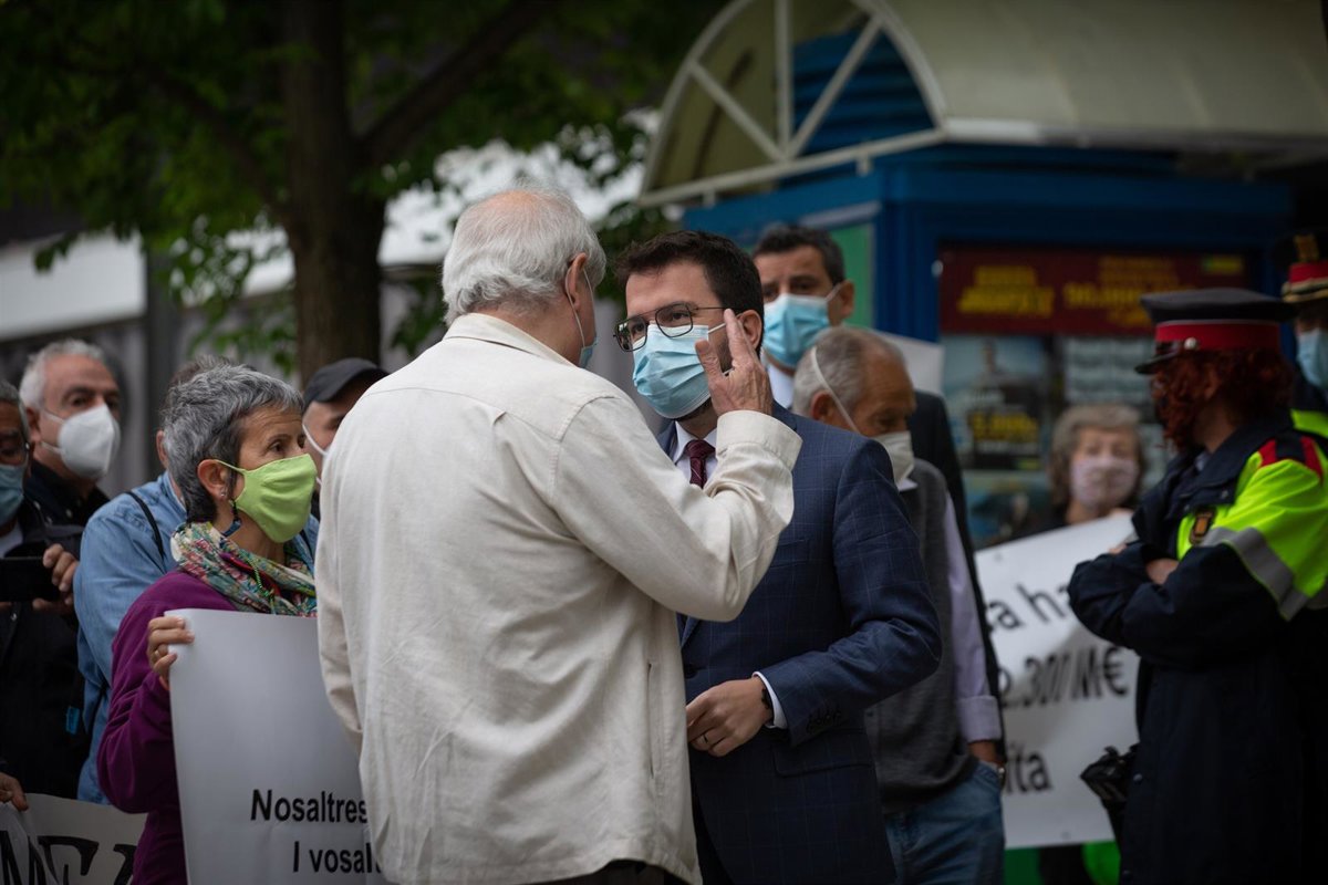 Una veintena de vecinos han recibido al presidente en su llegada al hospital con pancartas y reivindicaciones por una sanidad "100% pública" y un modelo público de residencias y Aragonès les ha atendido antes de iniciar su visita al Taulí.