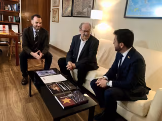 El presidente de la Generalitat, Pere Aragons, se reúne en el Cidob con el director del 'think tank', Pol Morillas, y su presidente, Antoni Segura. - EUROPA PRESS