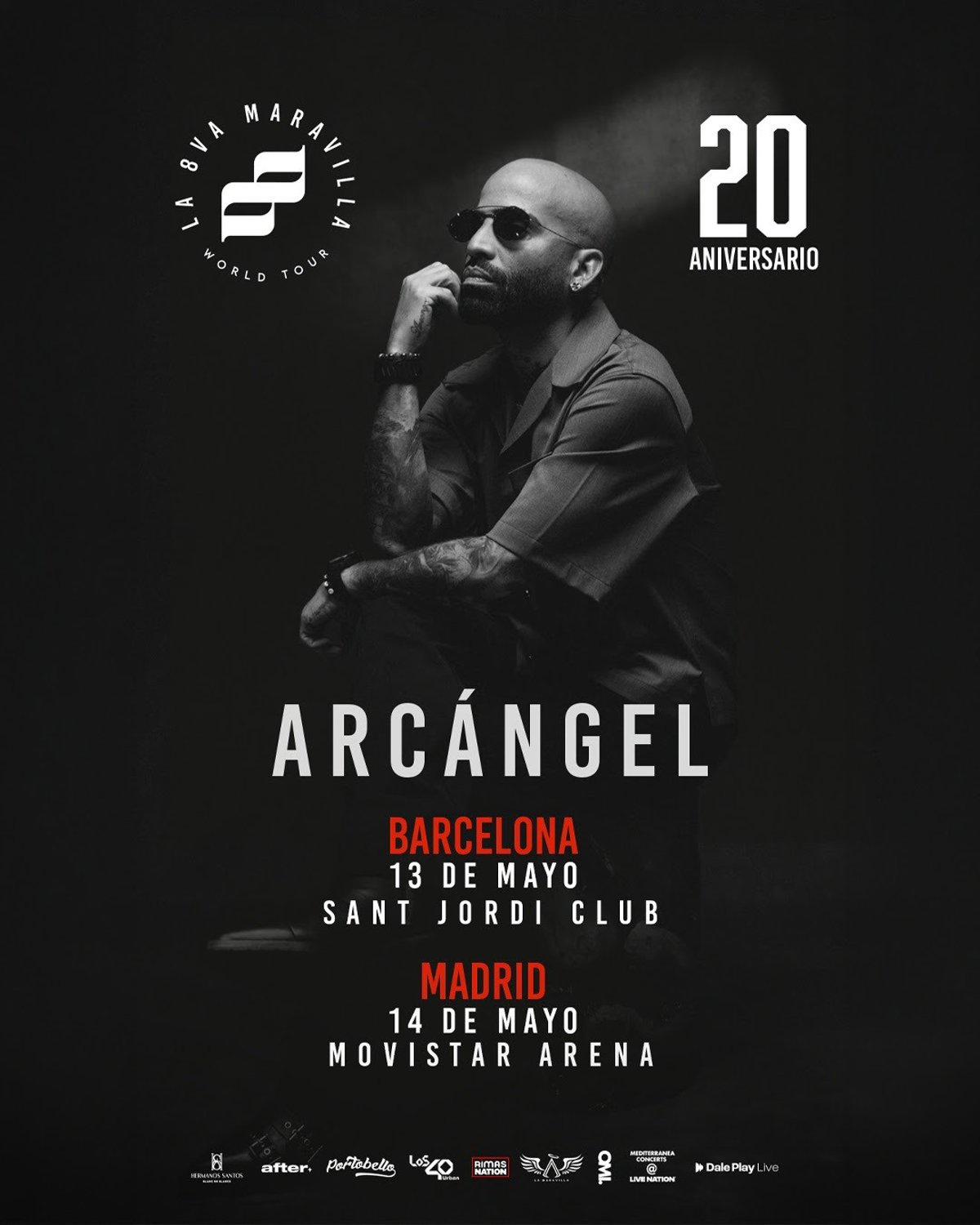 El artista urbano Arcángel actuará en Barcelona y Madrid en mayo dentro su gira 'La 8va Maravilla World Tour 20 Aniversario', con el que celebra 20 años de carrera de reggaetón y el trap latino, informa la promotora Live Nation en un comunicado.