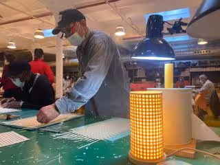 Un participante de los talleres de La Troballa de la Fundació Arrels elabora una lámpara - EUROPA PRESS