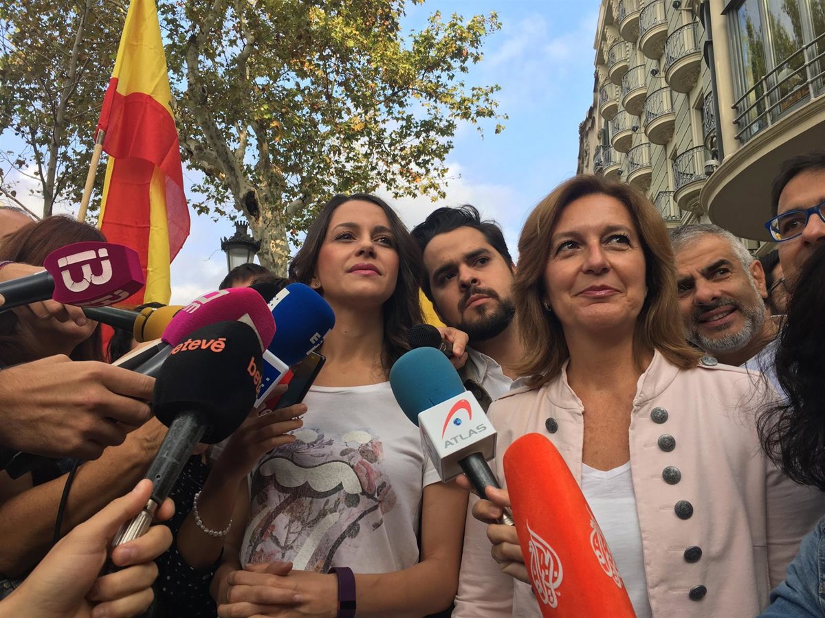 Espera que Puigdemont aproveche la oportunidad que considera que le ha brindado Rajoy, ya que aún está a tiempo de "bajarse del burro", según Arrimadas, que ha ido a la manifestación acompañada por el diputado de Cs en el Congreso José Manuel Villegas; los diputados del Parlament Fernando de Páramo y Carlos Carrizosa, y la líder del partido en el Ayuntamiento de Barcelona, Carina Mejías.