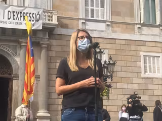 En el acto conjunto del Govern, partidos y entidades independentistas en plaza Sant Jaume, ha tachado esta operación como un montaje "para tapar la absolución de Trapero y de la cúpula de Interior, para tapar que ayer fue 27 de octubre y para tapar las fiestas indecentes de la élite madrileña que ponen en peligro la ciudadanía".