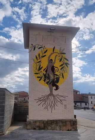 La artista plástica Isabel Elies ha pintado un mural de grandes dimensiones en uno de los centros de transformación que Endesa tiene en Cervià de les Garrigues (Lleida) y que ha cedido gratuitamente para poder plasmar el mural.