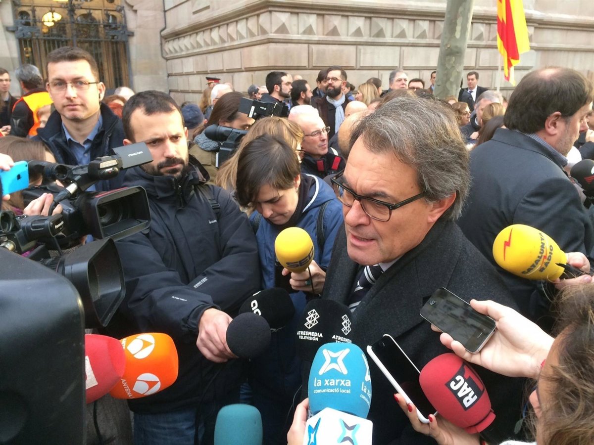 En declaraciones afrente al Tribunal Superior de Justicia de Catalunya (TSJC), donde Forcadell declara por haber permitido la votación de las conclusiones de la comisión de estudio del proceso constituyente en el Parlament, Mas ha recordado que hace un año también él tuvo que comparecer ante este tribunal por su participación en la consulta del 9 de noviembre de 2014: "La idea de la independencia de Catalunya no es un delito, no es un pecado; es simplemente una idea pacífica".