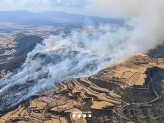 El incendio en Artesa de Segre (Lleida) ya afecta 75 hectáreas de vegetación, la mitad agrícola y la otra mitad forestal, han explicado los Bombers de la Generalitat en un comunicado.
