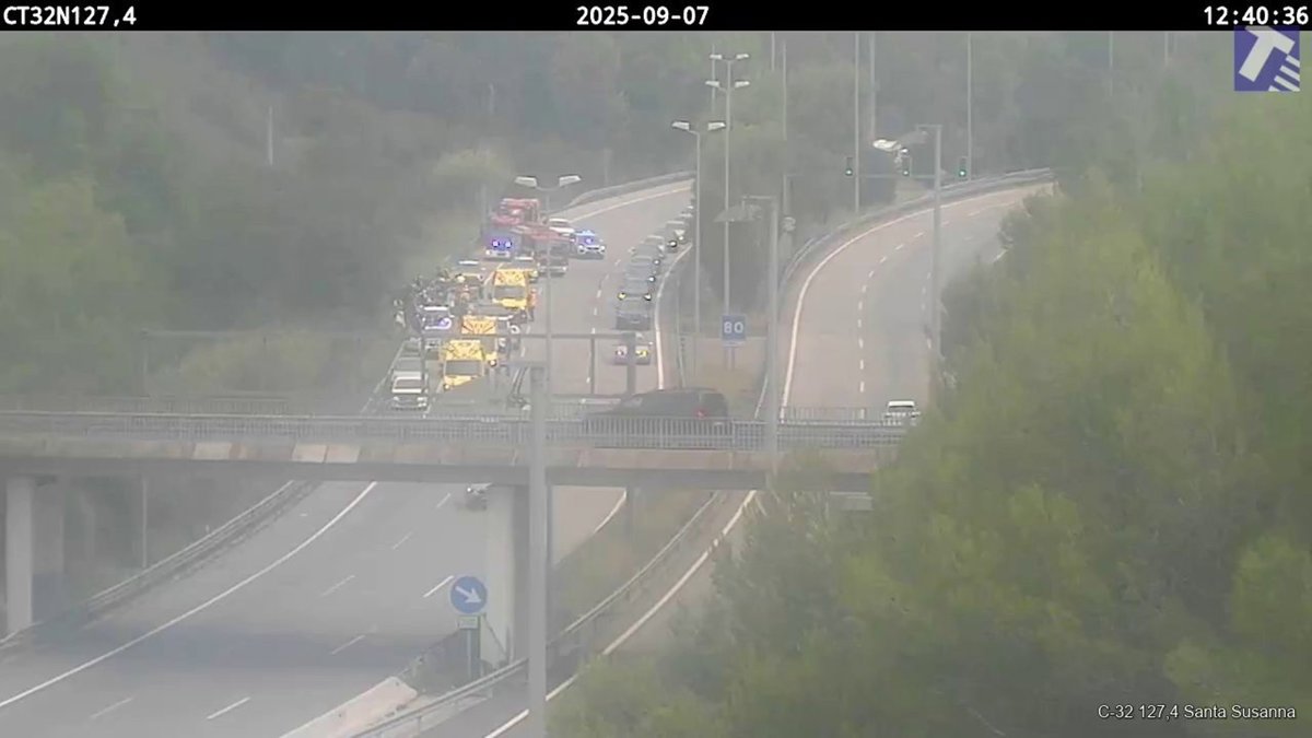 El Servei Català de Trànsit (SCT) ha informado vía 'X' que tras el accidente ha quedado solo un carril abierto en sentido sur/Barcelona.