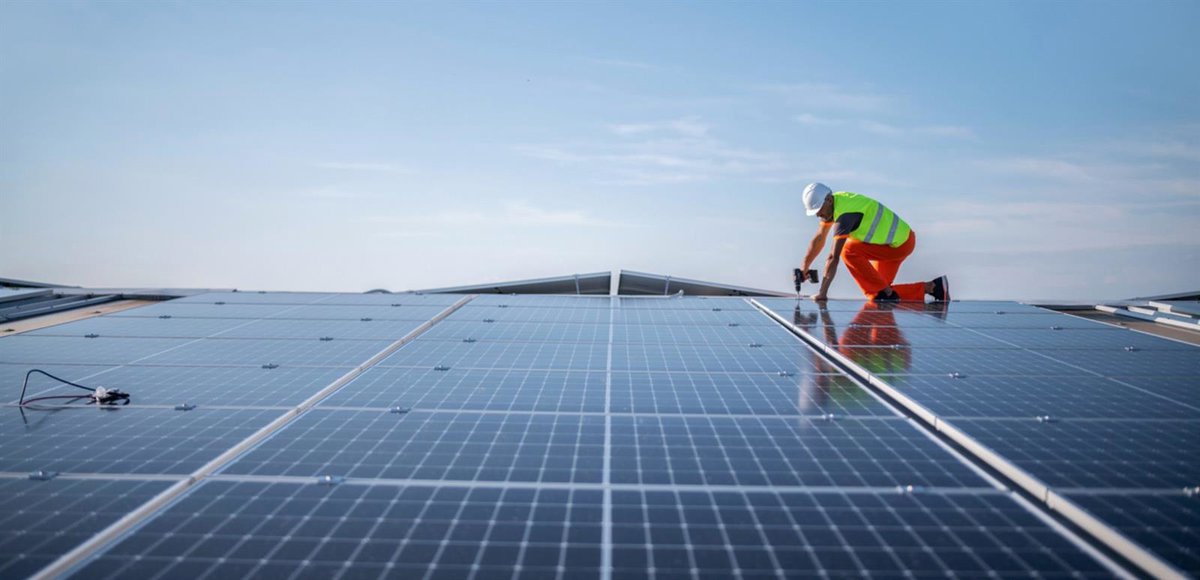Archivo - Un operario instala placas solares. - ENDESA - Archivo