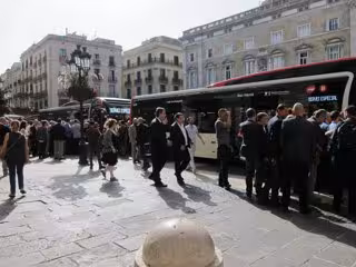 Los cinco buses son de servicio especial de Transports Metropolitans de Barcelona (TMB), que han subido hacia el paseo de Gràcia llenos de gente, que han salido tanto de la Generalitat como del Ayuntamiento.