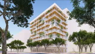 De nueve plantas, el edificio se construirá gracias a la inversión del Institut Municipal de l'Habitatge i Rehabilitació de Barcelona y es una propuesta de los arquitectos Vicente Guallart Furió y Daniel Ibáñez Moreno, con la constructora Acsa Obras e Infraestructuras.