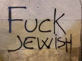 Una de las pintadas antisemitas que han dejado los manifestantes tras los altercados de la tarde del viernes en Barcelona. - ADA COLAU