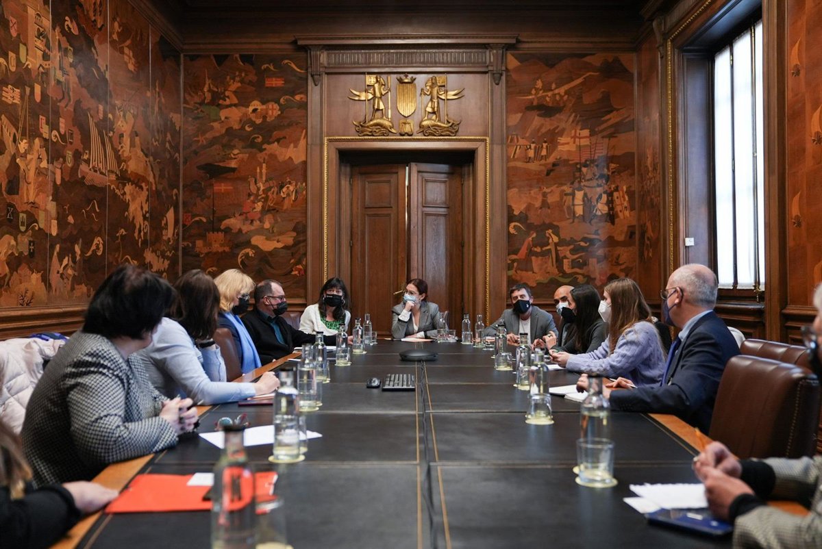 La teniente de alcalde de Derechos Sociales y Justicia Global del Ayuntamiento de Barcelona, Laura Pérez, el concejal de Derechos de Ciudadanía, Marc Serra, y el comisionado de Diálogo Intercultural y Pluralismo Religioso, Khalid Ghali, se han reunido este jueves con representantes de entidades socioculturales y comunidades religiosas ucranianas para transmitirles su apoyo institucional.