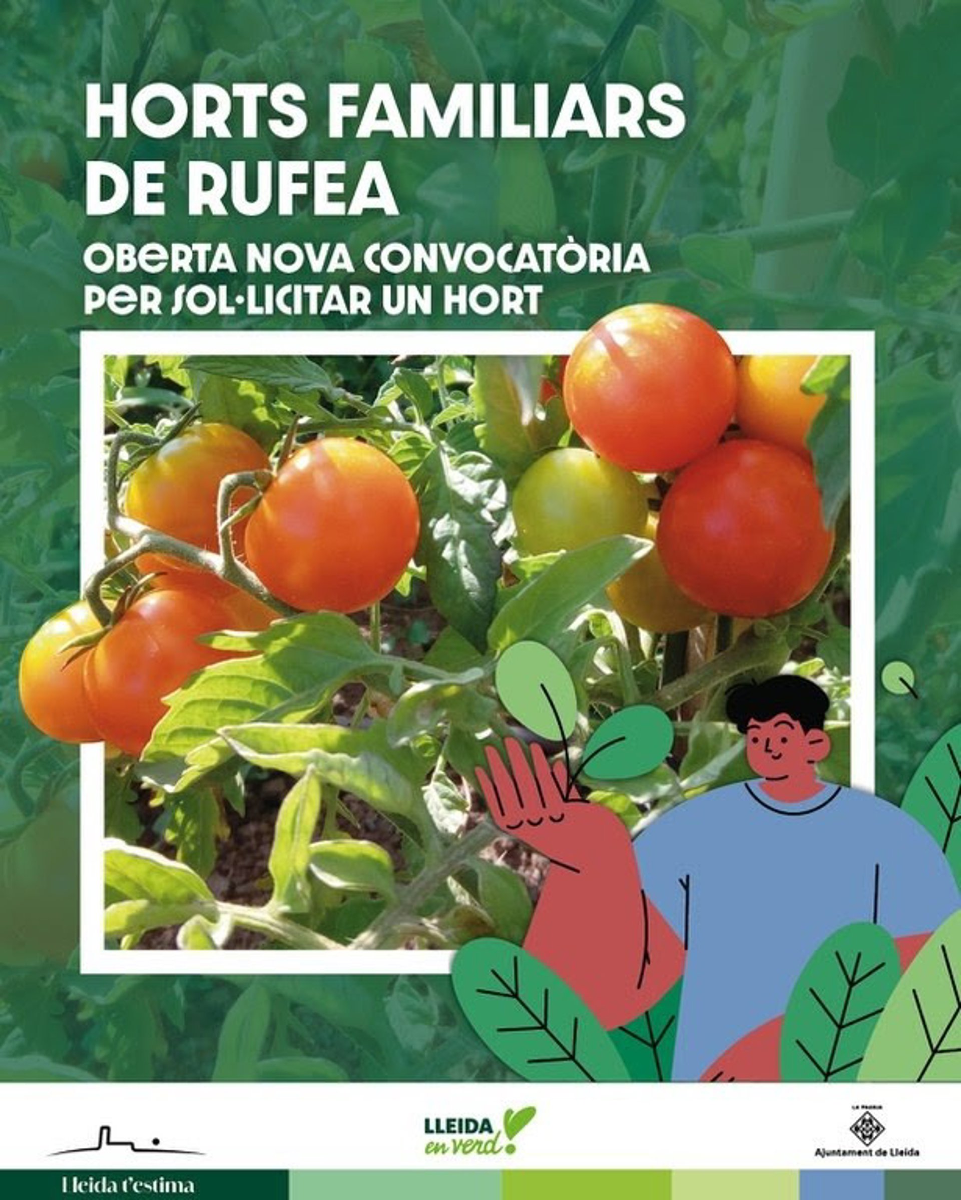 La Paeria de Lleida ha abierto el periodo de solicitudes para los Horts Familiars situados en Rufea (Lleida), donde se ofrecen parcelas de 100 metros cuadrados para el cultivo de hortalizas para el autoconsumo, asesoramiento y actividades formativas, informa en un comunicado este domingo.