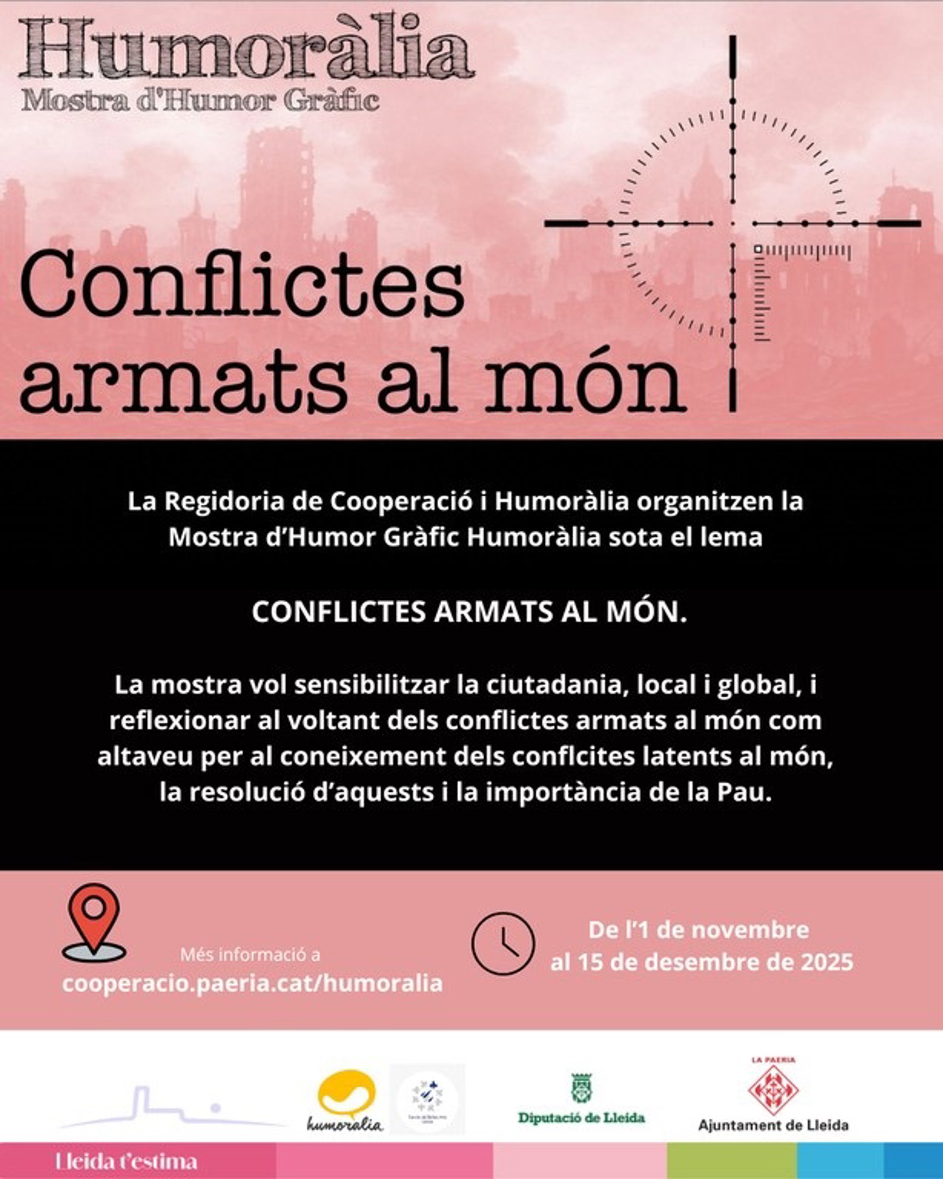 El Ayuntamiento de Lleida y Humoràlia han impulsado una nueva edición de la Mostra d'Humor Gràfic, que este año tiene el objetivo de sensibilizar sobre los "conflictos armados en el mundo".