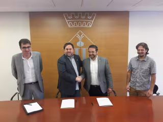 El vicepresidente del Govern y conseller de Economía y Hacienda, Oriol Junqueras, y el alcalde de Sabadell, Juli Fernández, han formalizado este lunes el convenio de colaboración entre la Agencia Tributaria de Catalunya (ATC) y el Ayuntamiento, mediante el cual los sabadellenses podrán realizar gestiones tributarias en cualquier oficina de su consistorio o de la ACT.