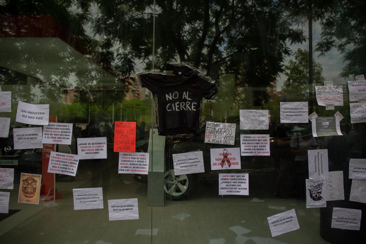 Trabajadores de Nissan cuelgan carteles como signo de protesta. En Barcelona, Catalunya (España), a 29 de mayo de 2020. - David Zorrakino - Europa Press