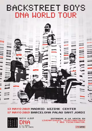 Tras 14 meses batiendo records con su espectáculo permanente en Las Vegas (Estados Unidos) 'Backstreet Boys: Larger Than Life', Backstreet Boys han confirmado este viernes el lanzamiento de un nuevo disco, 'DNA', que vendrá acompañado de una gira mundial, 'DNA World Tour', con la que visitarán España en mayo.