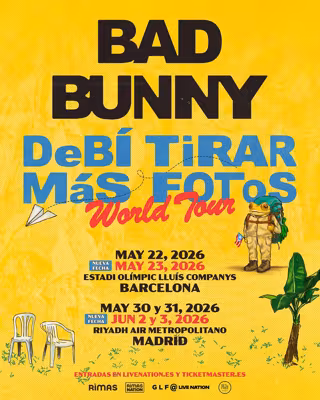 El puertorriqueño Bad Bunny ha anunciado un segundo concierto en el Estadi Olímpic Lluís Companys de Barcelona para el 23 de mayo por su gira 'Debí Tirar Más Fotos', así como dos más, el 2 y 3 de junio, en Madrid, según informa Live Nation este jueves en su web y en 'X'.