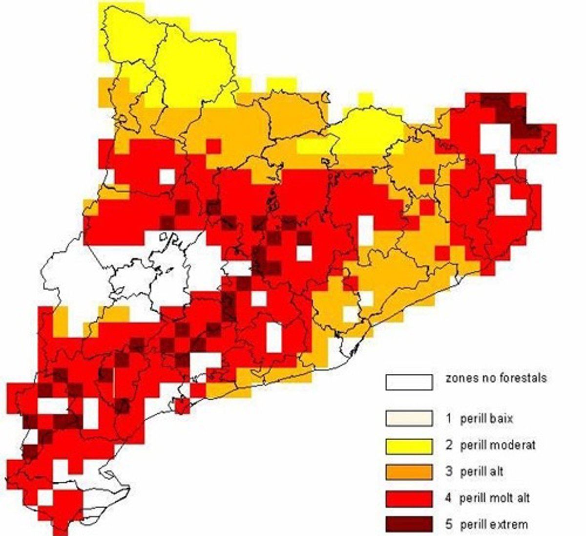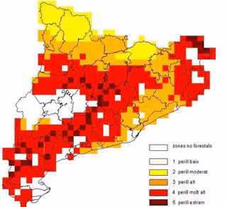En el resto de Catalunya, el riesgo se mantiene muy alto y puntualmente extremo en casi todo el interior y en los extremos norte y sur de la comunidad.