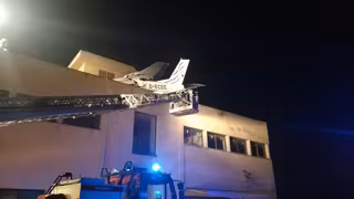 El operativo de emergencia ha podido bajar con una grúa la avioneta del accidente mortal de este viernes en Badia del Vallès (Barcelona), que se encontraba sobre un edificio de una gasolinera contra el que se ha estrellado, y procederán a sacar los cadáveres de los dos hombres muertos.