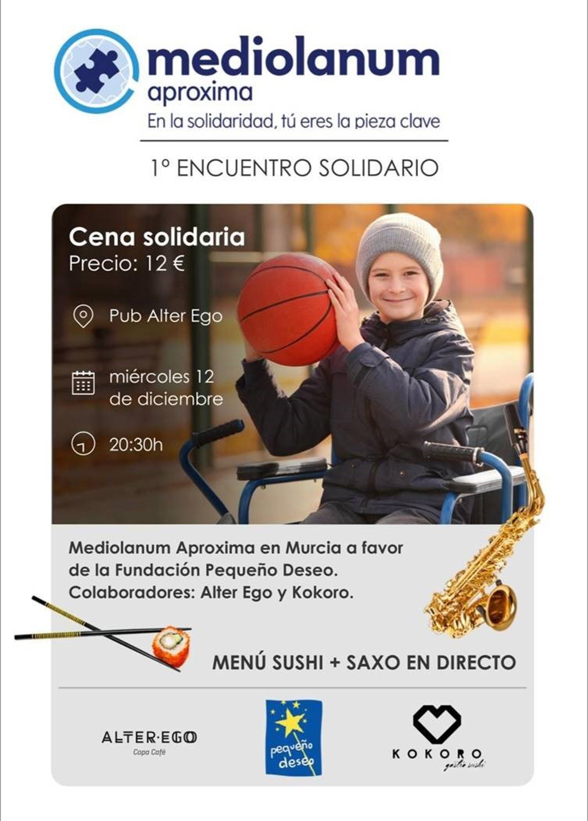 Banco Mediolanum organizará este miércoles en Murcia una cena solidaria a través de su proyecto solidario Mediolanum Aproxima a favor de la Fundación Pequeño Deseo, que trabaja para hacer realidad los deseos a niños y niñas con enfermedades crónicas o de mal pronóstico.