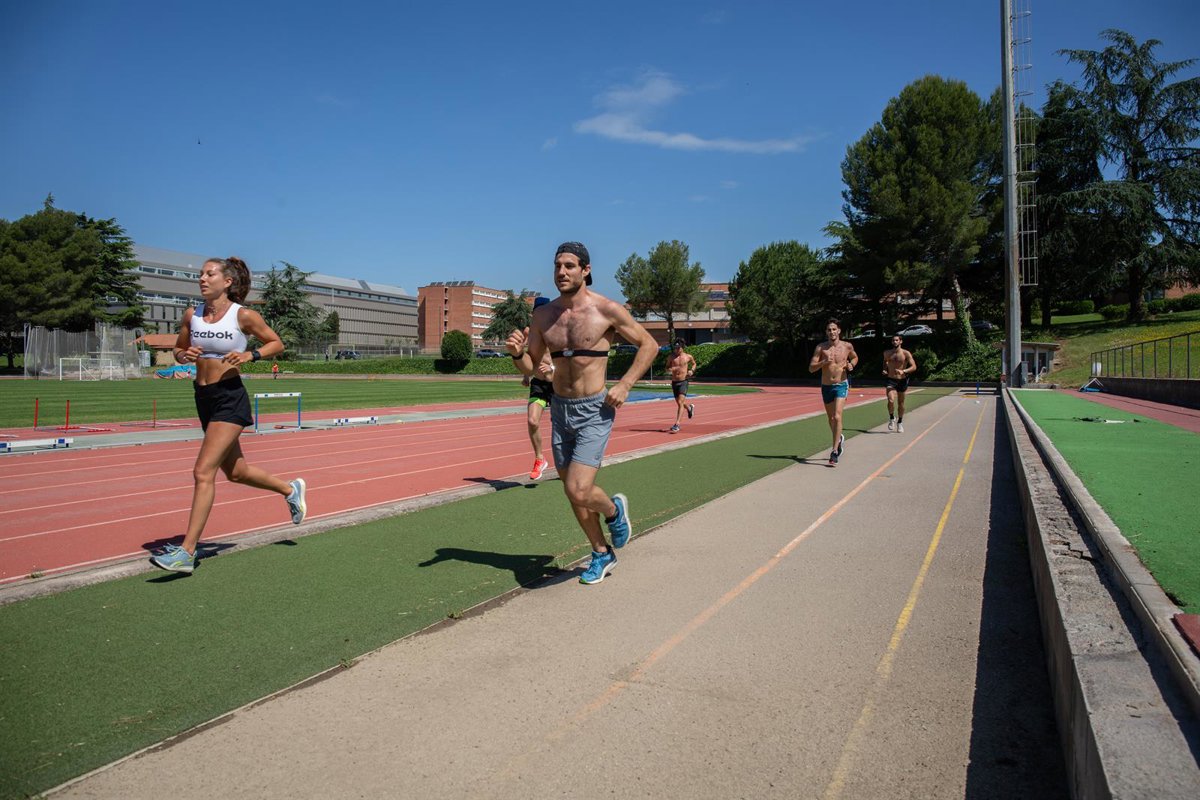 Varios deportistas corren por una pista de atletismo tras la reapertura parcial del Centro de Alto Rendimiento (CAR) de San Cugat del Vallés, en San Cugat del Vallés/Barcelona/Catalunya (España) a 18 de mayo de 2020. - David Zorrakino - Europa Press