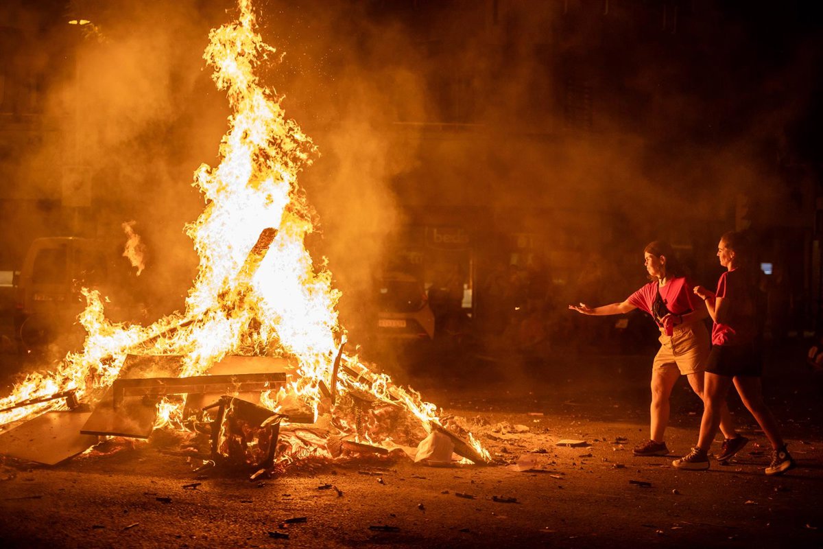 Dos mujeres tiran los deseos a la hoguera del barrio de Sant Antoni durante la noche de San Juan, a 23 de junio de 2023, en Barcelona, Catalunya (España). La ciudad de Barcelona conmemora esta celebración principalmente en sus playas, junto al Mediterrán - Kike Rincon/Europa Press