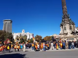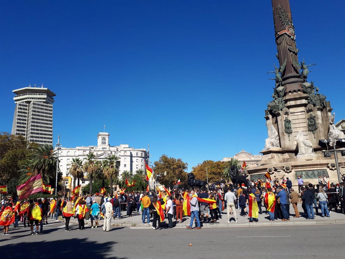 Manifestación ante el monumento a Colón en Barcelona por la Fiesta Nacional del 12 de octubre. - EUROPA PRESS