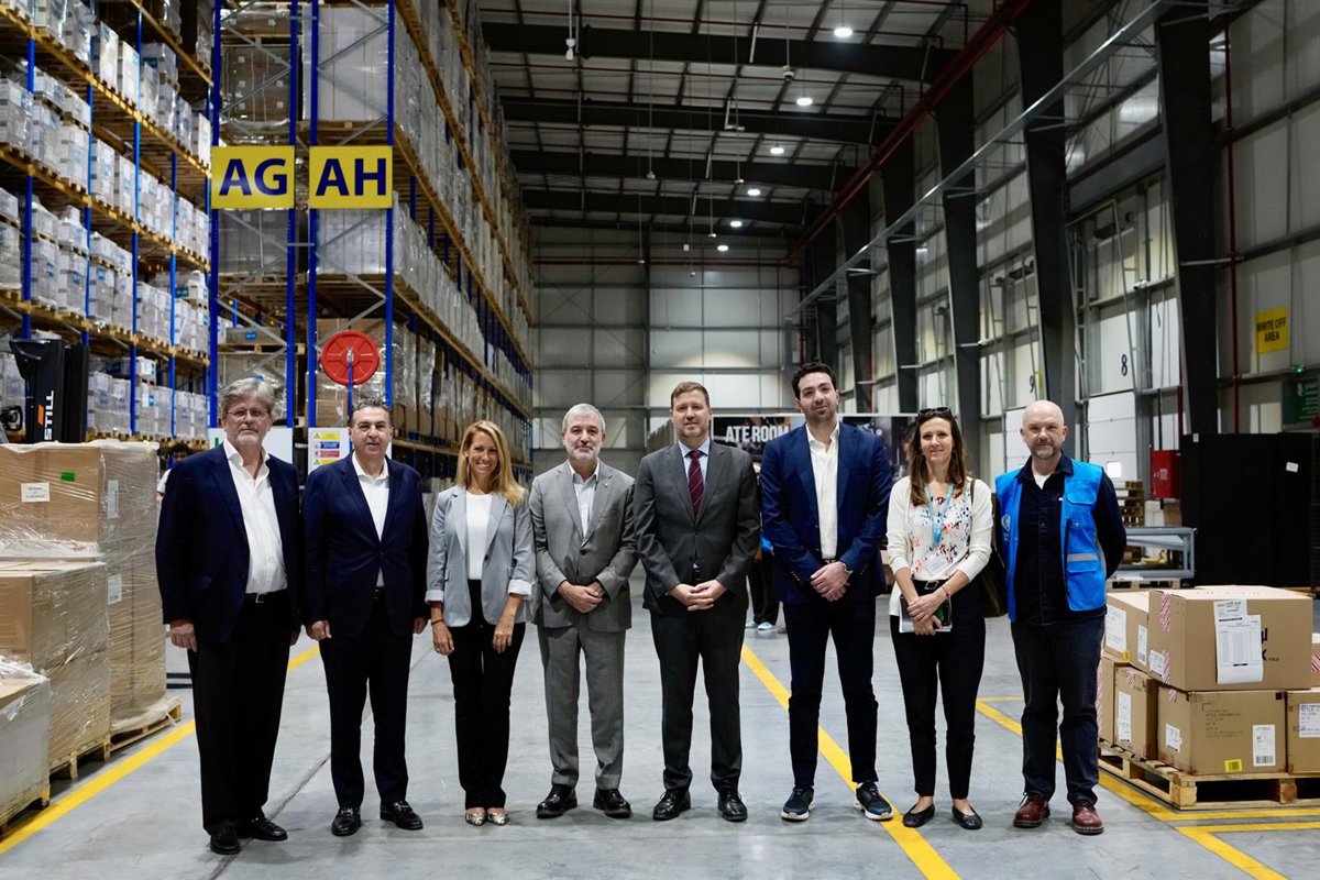 El alcalde de Barcelona, Jaume Collboni, junto a la segunda teniente de alcalde, Maria Eugènia Gay, durante su visita a los almacenes de la UNRWA. - LAURA GUERRERO - AYUNTAMIENTO DE BARCELONA