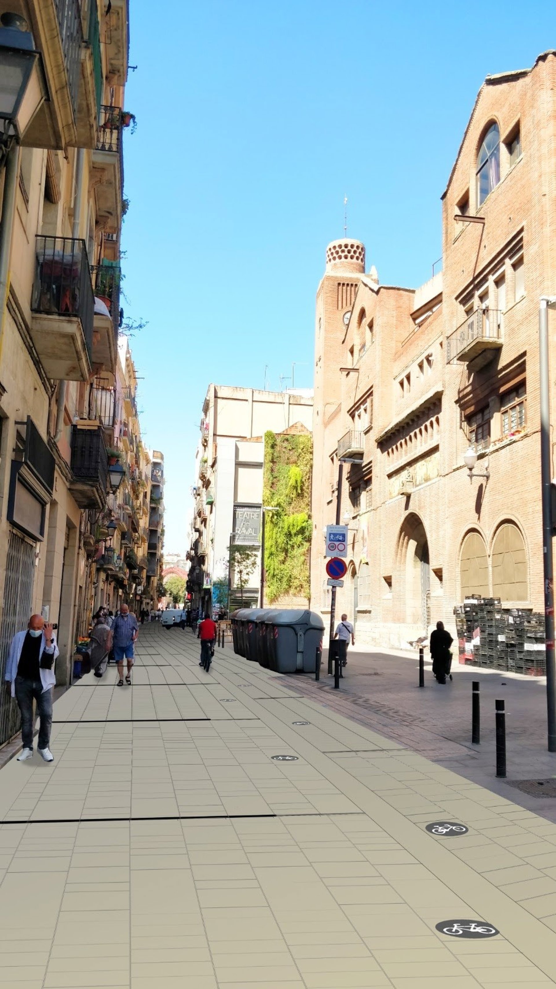 Proyección de la futura calle Sant Antoni Abad, en el distrito de Ciutat Vella, tras las obras de pacificación - AYUNTAMIENTO DE BARCELONA