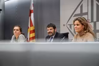 El teniente de alcalde de Prevención y Seguridad de Barcelona, Albert Batlle; la gerente de la Fundación Abertis, Georgina Lamme, y la concejal de Salud, Gemma Tarafa, han presentado este miércoles la campaña 'El Apagón' ('The Blackout') , una campaña sobre el riesgo de beber alcohol y conducir estas navidades.