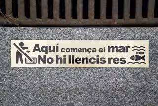 El Ayuntamiento de Barcelona ha instalado un centenar de placas en los imbornales de la ciudad para concienciar de que no se deben tirar pequeños plásticos, colillas de cigarro u otros residuos que pueden llegar al mar.