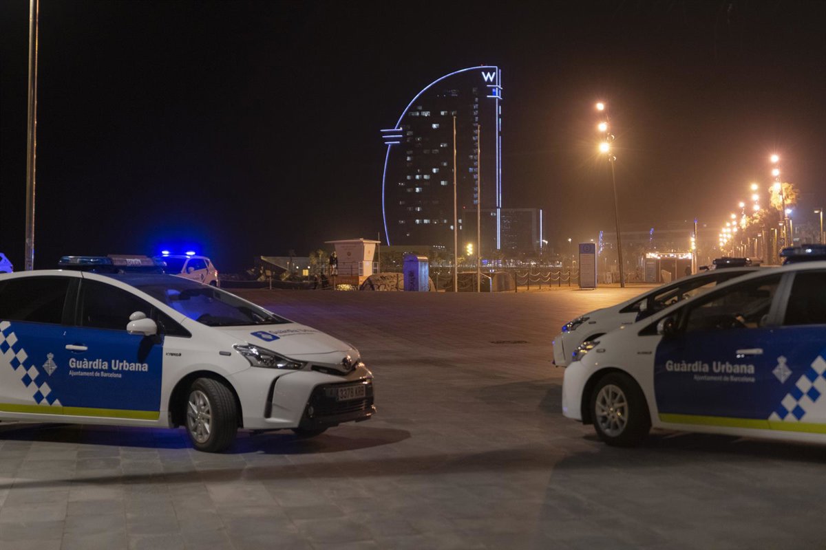 Dos coches de Policía aparcados en la playa de la Barceloneta, en una foto de archivo. - Lorena Sopna - Europa Press