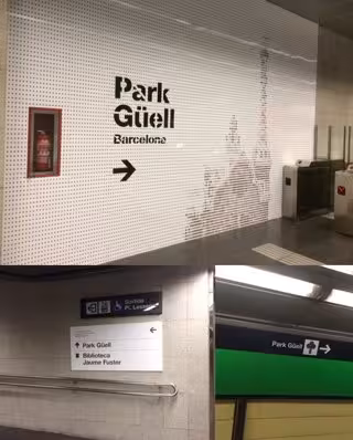 El Ayuntamiento ha diseñado una iconografía propia y ha creado un libro de estilo para definir los identificadores, y ha realizado una prueba piloto en la estación del Metro de la L3 de Lesseps donde se han instalado vinilos, señales y carteles que señalizan el Park Güell.