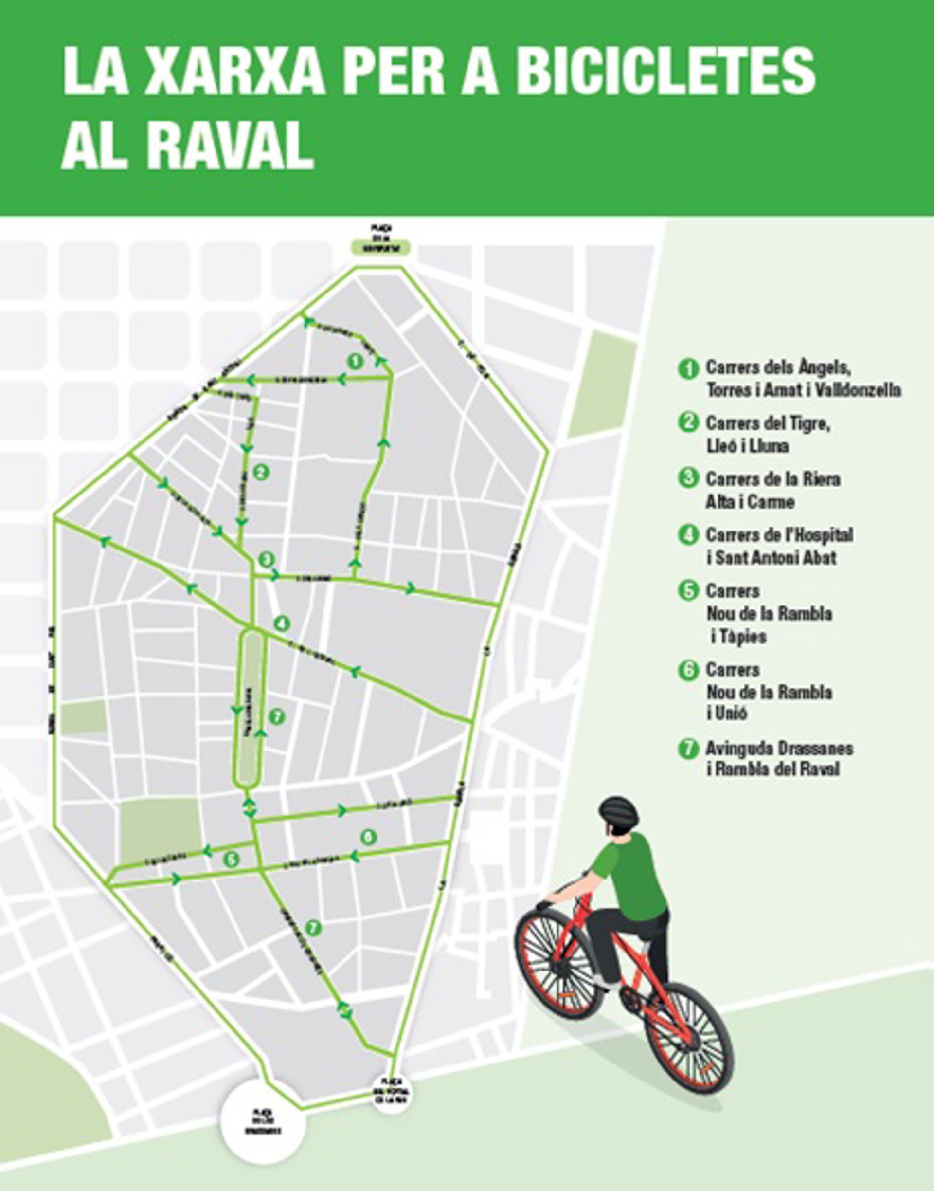 Mapa de los cambios contemplados en el barrio del Raval de Barcelona para priorizar peatones y bicicletas - AYUNTAMIENTO DE BARCELONA