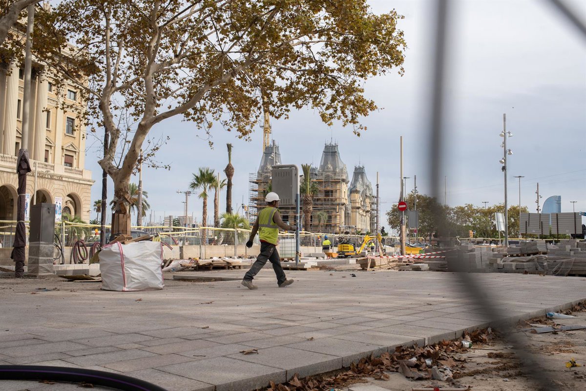 Archivo - Un obrero realizando obras en las Ramblas de Barcelona, a 25 de octubre de 2023, en Barcelona, Catalunya, (España). - David Zorrakino - Europa Press - Archivo