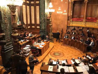 El teniente de alcalde Jaume Asens ha recordado que la escultura se retiró del vestíbulo del consistorio, donde estaba desde 1996, para retirar la inscripción en la que constaba que se trataba de un regalo de Samaranch: "Esta obra ya no puede ser interpretada como un homenaje a Samaranch, sino al olimpismo y a Joan Mora".