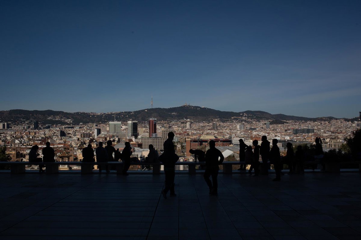 Archivo - Varias personas observan las vistas de Barcelona desde el Museo Nacional dArt de Catalunya (MNAC), en Barcelona - David Zorrakino - Europa Press - Archivo