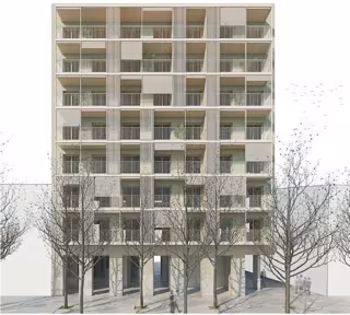 El Grup Mas ha propuesto para el número 22 de la calle Binéfar --en el barrio de la Verneda i la Pau-- una construcción de 24 pisos repartidos entre una planta baja y tres plantas con la madera como elemento principal.