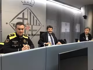 Foto: El intendente de la Guardia Urbana Pedro Velázquez; el teniente de alcalde de Seguridad de Barcelona, Albert Batlle, y el director de Movilidad, Adri Gomila. - EUROPA PRESS